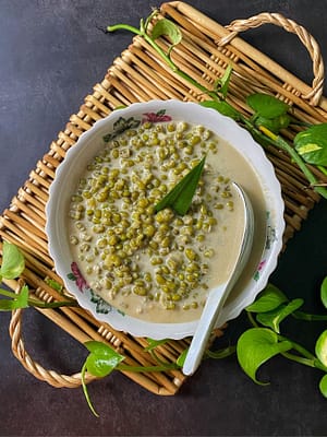 - Place the green beans, water, and pandan leaves in a pot.
